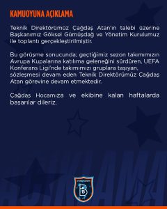 Başakşehir FK, Çağdaş Atan ile yola devam ettiğini açıkladı.