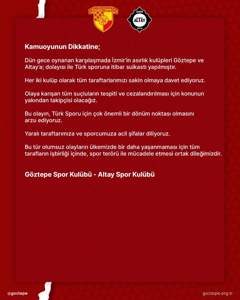 Göztepe ve Altay, dün yaşananlarla ilgili ortak açıklama yayınladı.
