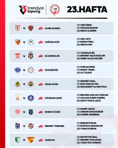 Trendyol Süper Lig’de 23. haftanın hakemleri belli oldu.