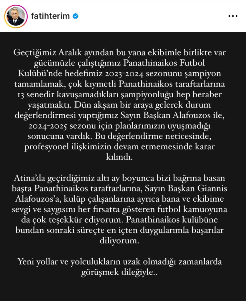 Panathinaikos, Fatih Terim’le yollarını ayırdı.