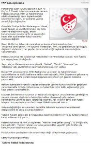 Tff resmi siteden Ali Koc’a cevap verdi.