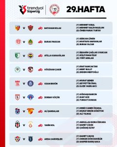 Trendyol Süper Lig’de 29. haftanın hakemleri belli oldu.